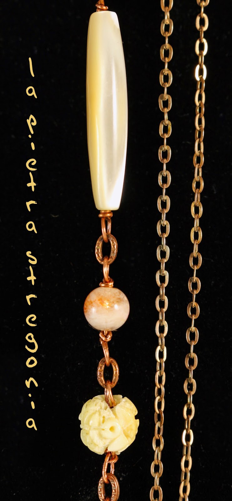 Come promesso ecco un pò di collane molto colorate! Sono realizzate con sfere di legno leggerissimo dipinte a mano, pietre dure e tante perle e perline vintage. Le ho sempre fatte, non sono una novità nel mio negozio di Pitigliano, i materiali sono sempre gli stessi però il modello viene cambiato ogni anno. Come dicevo l'inverno mi ha veramente stancato, ho voglia di colori, queste collane stanno benissimo anche sui maglioni e tirano su il morale!